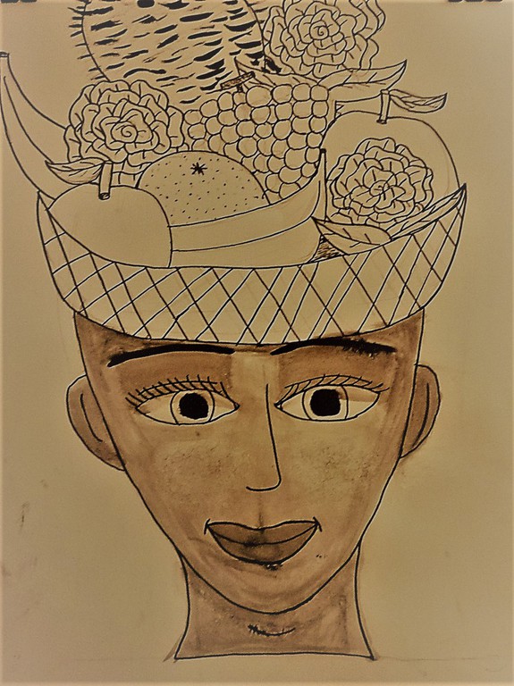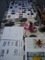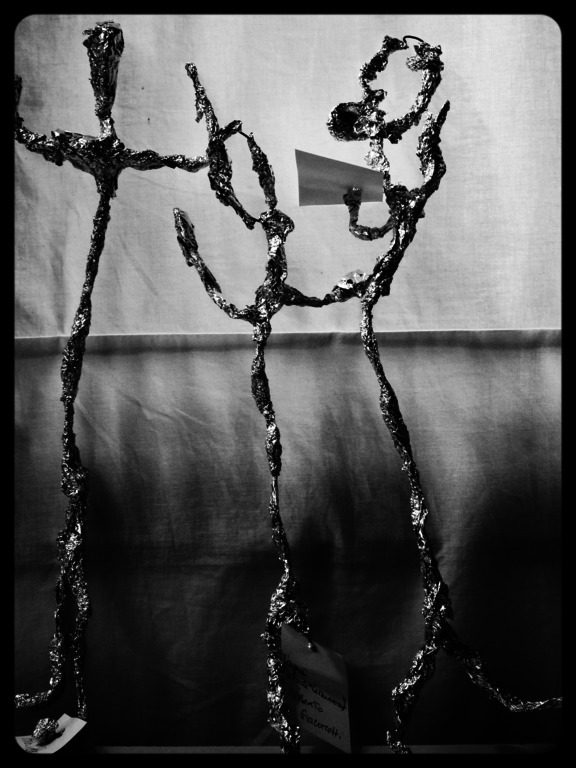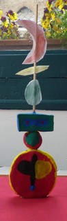 sculpture en argile,papier et gouache.